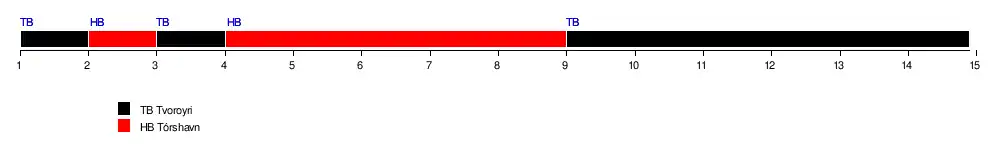 | TB Tvøroyri | 1 | 2 | 1 | 2 | 2 | 2 | 2 | 2 | 1 | 1 | 1 | 1 | 1 | 1 | 8 | |