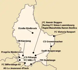 FC Avenir Beggen (promu de D2)Henri Dunant4 900Luxembourg
