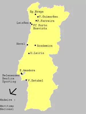 Au terme de la saison 2006-2007, Clube Desportivo das Aves et Sport Clube Beira-Mar ont été relégués en seconde division. Ils ont été remplacés par Leixões SC, premier du dernier championnat de seconde division et qui remonte dans l'élite après 18 ans, et Vitória Guimarães, vice-champion qui retrouve la Liga après deux saisons d'absence.