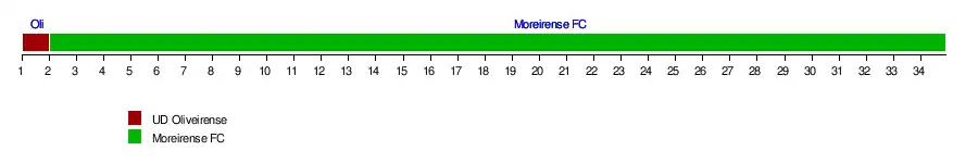 | Moreirense FC | 6 | 1 | 1 | 1 | 1 | 1 | 1 | 1 | 1 | 1 | 1 | 1 | 1 | 1 | 1 | 1 | 1 | 1 | 1 | 1 | 1 | 1 | 1 | 1 | 1 | 1 | 1 | 1 | 1 | 1 | 1 | 1 | 1 | 1 |