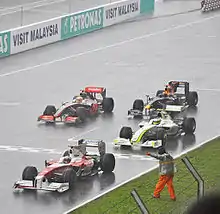 Pour la troisième fois de la saison et la sixième de sa carrière, Jenson Button s'élance de la pole position. Il devance Sebastian Vettel alors que son coéquipier Rubens Barrichello et Felipe Massa occupent la deuxième ligne. À l'extinction des feux, Barrichello prend le meilleur départ et se retrouve en tête devant son coéquipier. Massa use de son SREC et dépasse Vettel qui glisse en quatrième position devant Mark Webber et Fernando Alonso.