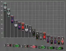- Les monoplaces sont plus lourdes, passant de 642 à 691 kg à cause du poids plus important du nouveau bloc propulseur et de la nouvelle structure des pneus en kevlar[39].