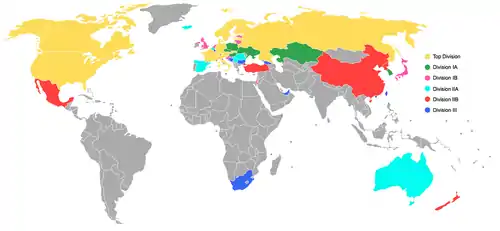 Pour les autres divisions qui comptent 6 équipes (sauf la Division III), les équipes s’affrontent entre elles et, à l'issue de cette compétition, le premier est promu dans la division supérieure et le dernier est relégué dans la division inférieure. En Division III, les équipes sont réparties en deux poules de quatre. À l'issue de cette phase de poule, les 2 premiers s'affrontent en demi-finales croisées. Le vainqueur de la finale est promu en Division IIB.