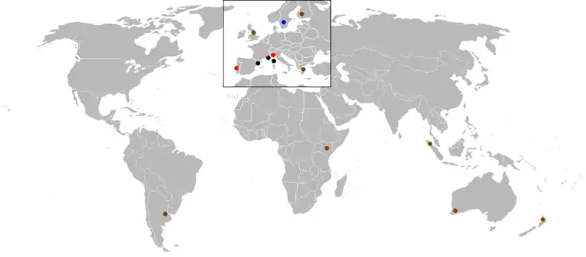 | Noir = Asphalte | Marron = Terre / Gravier | Bleu = Neige/ glace | Rouge = Surface mixte | ||||||||||
