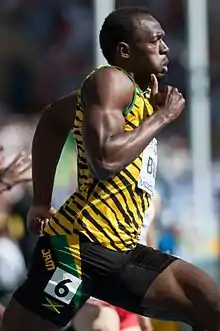 Les épreuves de sprint sont marquées par le triplé réalisé par le Jamaïcain Usain Bolt sur 100 m, 200 m et relais 4 × 100 m, qui réédite ses performances des championnats du monde 2009 et des Jeux olympiques de 2008 et de 2012. Il remporte tout d'abord l'épreuve du 100 m, deux ans après sa disqualification pour faux-départ aux mondiaux de Daegu, en s'imposant dans le temps de 9 s 77, devant l'Américain Justin Gatlin (9 s 85) et l'autre Jamaïcain Nesta Carter (9 s 95)[22],[23]. Il s'adjuge ensuite le titre mondial du 200 m en établissant la meilleure performance mondiale de l'année en 19 s 66, devant son compatriote Warren Weir (19 s 79) et l'Américain Curtis Mitchell (20 s 04)[24]. En fin de compétition, il rejoint les Américains Carl Lewis, Michael Johnson et Allyson Felix en devenant l'athlète le plus titré dans cette compétition avec huit médailles d'or. Il remporte en effet, avec Nesta Carter, Kemar Bailey-Cole et Nickel Ashmeade, l'épreuve du relais 4 × 100 m en 37 s 36, en devançant l'équipe des États-Unis (Silmon, Rodgers, Salaam et Gatlin) et celle du Canada (Smellie, Brown, Richards-Kwok et Warner), qui remportent la médaille de bronze après la disqualification du Royaume-Uni pour passage de témoin hors zone[25].