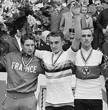 Francis Bazire, Flaviano Vicentini et Winfried Bölke sur le podium du championnat du monde sur route amateurs