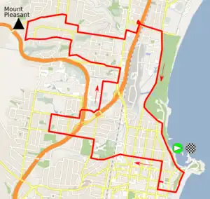La ligne de départ des courses « élites » se situe à Helensburgh (en), à environ 30 km au nord de Wollongong. Le parcours effectue une boucle de 34 km autour du Mount Keira (8,7 km avec une pente moyenne de 5 % et une pente maximale de 15 %) avant de rejoindre le circuit principal tracé à Wollongong. Ce circuit de 17,7 km présente un dénivelé de 220 m et comprend comme principale difficulté la montée de Mount Pleasant (1,1 km avec une pente moyenne de 7,7 % et une pente maximale de 14 %)[4],[5].