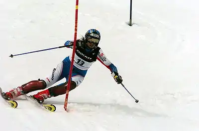 Christel Pascal participant à l'épreuve de slalom aux championnats du monde 2001.