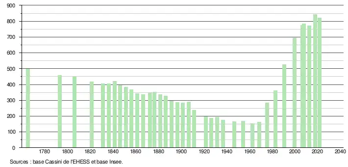 L'évolution de l’occupation des sols de la commune et de ses infrastructures peut être observée sur les différentes représentations cartographiques du territoire : la carte de Cassini (XVIIIe siècle), la carte d'état-major (1820-1866) et les cartes ou photos aériennes de l'IGN pour la période actuelle (1950 à aujourd'hui)[Carte 1].
