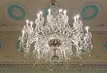 Le plafond, ...du milieu duquel pendait un immense chandelier vénitien... (Élémir Bourges, Le Crépuscule des dieux, 1884, p. 102).