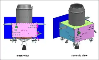 - le module de propulsion PM (Propulsion Module) d'une masse d'environ 2 379 kg amène la sonde spatiale jusqu'à l'orbite lunaire finale. Une fois sur cette orbite et contrairement au module équivalent de Chandrayaan-2, la sonde n'a pas vocation à recueillir des données scientifiques mais joue le rôle de relais entre la Terre et les engins à la surface de la Lune ;