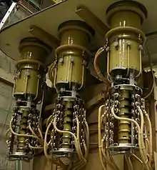 - Maschinenfabrik Reinhausen, abréviée en MR, constructeur allemand basé à Ratisbonne. Il fabrique des OLTC depuis 1926[4], leader mondial, déclare avoir vendu au total 150 000 OLTC[54].