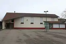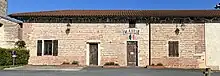 - La mairie est l'ancien presbytère du village[30], sa construction est typique de la région avec les rangs de carrons et de galets. L'édifice a été bâti en 1757 et la partie sud en pisé représente une arête pierre-briques.