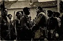 Georges Lamirand dans un chantier de la jeunesse française. Carte postale de propagande du régime de Vichy.