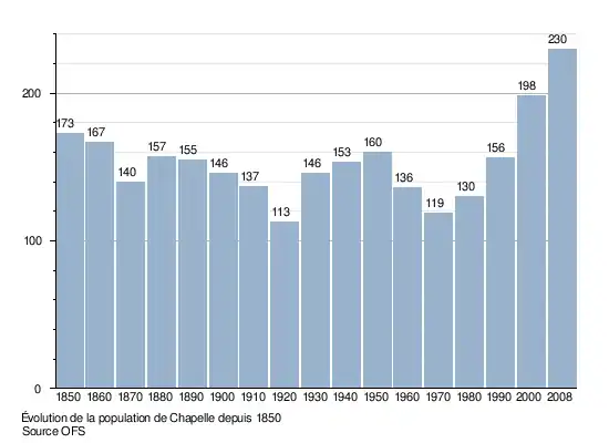 Selon l'Office fédéral de la statistique, Chapelle compte 334 habitants en 2022[1]. Sa densité de population atteint 165 hab./km2.
