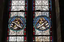 Des anges sont figurés sur les vitraux de la nef, portant des phylactères. On peut y lire en latin les invocations à Marie que l'on récite dans les litanies („MATER ADMIRABILIS“, „ETERNAE MATER“, „MATER DIVINAE GRATIAE“, „MATER CHRISTI“, „MATER INTEMERATA“, „MATER PURISSIMA“, „MATER CASTISSIMA“, „MATER INVIOLATA“, „SANCTA MARIA“, „MATER SALVATORIS“, „MATER CREATORIS“, „SANCTA DEI GENITRIX“).