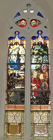 Dans la chapelle latérale, un vitrail de 1875 signé par l'atelier Fournier et Clément représente l'épisode où Charles d'Aubusson est en fâcheuse posture dans le marais.