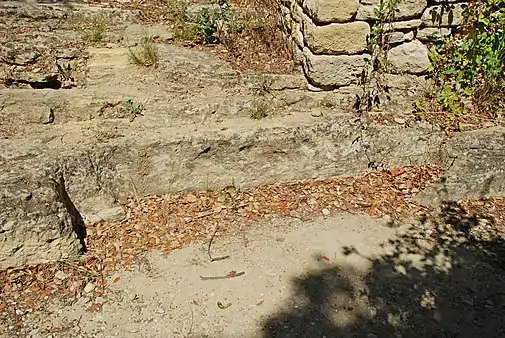 À l'arrière de l'ermitage, on trouve une annexe basse édifiée en moellons plus gros assemblés en appareil irrégulier, au-dessus de laquelle on aperçoit une baie cintrée à encadrement de pierre de taille.
