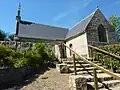 La chapelle est située sur un placître surélevé par rapport à la route et aux anciens chemins, conservant ainsi sa signification première de lieu de rencontre. L'ensemble est formé de blocs de granit non appareillés et présente un plan hybride avec un transept au sud, un chevet débordant à mur plat, et un collatéral au nord séparé du vaisseau central par un pilier de section carrée[1].