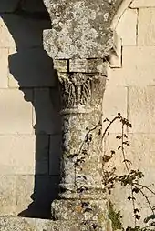 Le chapiteau de la colonne située à droite de la porte est orné de feuilles d’acanthe alors que le chapiteau de la colonne de gauche est orné d’une fleur encadrée de palmettes[5].