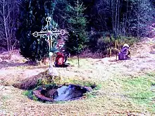 Dominant un bassin circulaire de la fontaine, transférée un peu plus bas une croix en fer forgé a été installée, probablement au XIXe siècle.