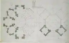 Le second projet, plus modeste, prévoit quatre grandes chapelles rectangulaires disposées sur les diagonales d'un espace central octogonal. Un solide soubassement à gradins concentriques aurait compensé la forte surélévation du chœur gothique pour donner une position dominante au mausolée.