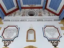 Deux médaillons sont présents en façade avec les inscriptions suivantes :