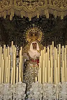 Le retable majeur provient d'un couvent d'Osuna. Dans sa partie centrale se trouve une statue habillée de Notre Dame de La Esperanza de Triana Coronada, attribuée à Gabriel de Astorga (1816). L'attique du retable présente un bas-relief représentant Dieu le Père. On y trouve également un Christ Rédempteur.