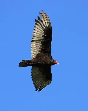 L’urubu à tête rouge et l’urubu noir sont deux espèces bien adaptées au vol à voile. L'urubu noir a toutefois une charge alaire un peu plus grande, ce qui fait qu’il est plus dépendant des courants ascendants pour se déplacer. La fréquence des courants ascendants diminue à mesure qu’on monte vers le nord. L’urubu noir est ainsi moins apte à coloniser l’Amérique du Nord que son congénère, ce qui se reflète sur la carte de répartition des deux espèces sur ce continent[1].