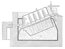 - la cagniardelle, en 1809, machine destinée à entraîner l'air par un liquide, aussi bien pour faire le vide dans une enceinte que pour décarburer les fontes par apport d'oxygène. Elle est devenue désuète depuis l'introduction des pompes-turbines. Son principe est fondé sur une vis d'Archimède faiblement inclinée, de façon que l'extrémité inférieure soit complètement immergée et l'extrémité supérieure seulement partiellement ; la vis est actionnée dans le sens inverse de celui qui ferait monter l'eau ; à chaque tour, l'air entre par l'extrémité supérieure et descend, en refoulant l'eau, le long des spires vers l'extrémité inférieure où un tuyau le récupère. Victor Hugo, entre autres, y fait allusion dans Les Travailleurs de la mer (IIe partie, chap. X) ;