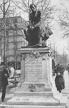 Une souscription populaire permit l'érection du Monument à Charles Fourier, réalisé par Émile Derré (1867-1938). Situé boulevard de Clichy, à Paris, il fut inauguré en par son disciple Jean-Adolphe Alhaiza[26].