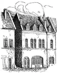 - Actuellement à l’angle des rues Moncey et Grande-Rue à Besançon. Voir Charles Pellarin, Fourier, sa vie et sa théorie, Paris, Librairie phalanstérienne, , 444 p. (lire en ligne), p. 28.
