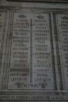 | Hommages | Nom gravé sous l'arc de triomphe de l'Étoile, 4e colonne. |