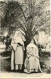 Voyant plus loin que l'Algérie, Lavigerie obtient du Saint-Siège le d'être nommé nonce apostolique pour les missions du Sahara et du Soudan[46]. Il fonde en la société des Missionnaires d'Afrique, communément appelés « Pères blancs »[47], et en les Sœurs missionnaires de Notre-Dame d'Afrique, ou « Sœurs blanches » (chargées notamment de l'orphelinat de Kouba)[48].