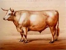 Durant la première partie du XIXe siècle, l'élevage de la charolaise s'étend progressivement dans la Nièvre, certains éleveurs du Charolais (à la tête desquels on trouve Claude Mathieu, fils d'Émilien Mathieu[7]) étant venus s'installer sur ces terres. Il s'étend par la suite dans les autres départements du Centre-Val de Loire. Afin d'améliorer la race, certains producteurs de ces régions font le choix de la croiser avec des animaux anglais de race durham. En effet, l'agriculture pratiquée en Angleterre est largement en avance. Le modèle féodal y a été abandonné plus précocement et les fermes sont de grande taille. Les animaux qui y sont élevés sont nettement mieux conformés que les animaux de trait en France. Soutenu par les pouvoirs publics français, qui ont créé par exemple des prix spéciaux pour les animaux charolais × durham dans les concours[3], l'importation d'animaux Durham est courante entre les années 1830 et les années 1850. Les premiers produits de ces croisements donnent entière satisfaction, ayant hérité notamment de la précocité, la finesse et l'aptitude à l'engraissement de la durham. Toutefois, au fur et à mesure des métissages successifs, les éleveurs s'aperçoivent que leurs animaux perdent de leur rusticité et de leur aptitude au travail, et que leur viande est bien souvent chargée de gras. Cela donne raison aux défenseurs de la sélection en race pure, et l'amélioration de la race par l'intégration de sang durham est finalement abandonnée vers 1850[7].