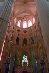 - Cette église, parmi les 934 premiers édifices classés monuments historiques dans l'histoire française, a été construite entre 1160 et 1230 et témoigne de la transition de l'architecture romane vers le gothique. La haute nef de quatre travées est la première partie construite. Le portail occidental possède une archivolte plein cintre faite de moulures toriques et prismatiques et de minces cordons. Cette archivolte est plus large que la porte et ne prend pas appui sur des colonnettes à chapiteaux, comme c'est fréquemment le cas. En dessus du portail, une baie plein cintre éclaircit la nef, cantonnée de fines colonnettes à chapiteaux et flanquée de deux petites arcades décoratives, l'ensemble étant surmonté d'un gâble à peine saillant. Les bas-côtés possèdent également une baie chacun sur la façade occidentale, entourées de tores et cantonnées de colonnettes à chapiteaux. L'archivolte, semblable à celle de la baie haute de la nef, prend appui sur un larmier. En haut, le pignon est percé d'un oculus cerné de tores. Les contreforts se retraitent par trois fois et présentent une silhouette en cascade peu prononcée. La nef est suffisamment haute pour laisser la place à des fenêtres hautes sur les façades latérales. Le clocher se situe à l'emplacement de la quatrième travée du bas-côté sud. De style Renaissance, il a été dessiné par Pierre et Nicolas Le Mercier et exécuté à partir de 1520 par les artisans Gilles Vivian et Jean Bretel, tous de Pontoise. Ce clocher volumineux et dépourvu de flèche est ajouré d'une baie abat-son par face au niveau du premier étage, et de deux baies au second étage, surmontées par des frontons respectivement triangulaires et en arc de cercle. Les contreforts strictement verticaux sont entrecoupés par des entablements moulurés en haut de chacun des trois niveaux, avec, peu avant leur sommet, une frise se poursuivant sur les faces du clocher. Une tourelle d'escalier octogonale flanque le clocher au sud et monte jusqu'au début de second étage. Le transept a la même hauteur que la nef, et ses deux façades sous pignon comportent trois baies superposées, la première plein cintre et les autres ogivales. Au sud, le rez-de-chaussée est toutefois obstrué par la sacristie, et la baie supérieure a été remplacée par une grande rosace. Les contreforts ont quatre glacis intermédiaires. Quant au chœur en hémicycle à déambulatoire, il aurait été inspiré par l'abbatiale de Saint-Germer-de-Fly. Ce chœur est à sept pans et comporte trois chapelles rayonnantes du XVIe siècle, celles d'origine ayant disparu. L'intérieur s'organise sur quatre niveaux : déambulatoire, triforium, oculi et rosaces sans jour par l'extérieur et fenêtres hautes à lancette simple. Les murs du chœur sont consolidés par six arcs-boutants dans la prolongation des contreforts du déambulatoire[27],[28].