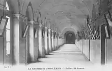 Extérieur du cloître Saint-Bruno de la chartreuse Saint-Lazare d'Orléans sur une carte postale ancienne | |||||