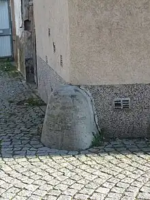 • angles de mur à l'intersection de deux rues (avant l'implantation des trottoirs). Dans ce cas, ils étaient souvent dans la même pierre que le mur et en constituaient en quelque sorte un prolongement ;