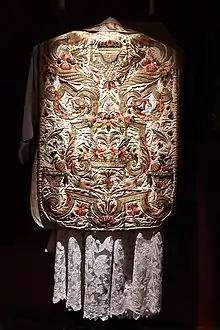 À force de l'enrichir de parements, de broderies, de fils précieux (or, argent), le tissu s'est épaissi et la pliure est devenue impossible, le vêtement incommode : il fallait deux assistants à chacun des prélats lors du sacre royal à Reims pour soutenir les pans des vêtements.
