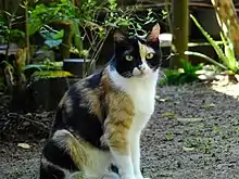 Au Japon, les figurines Maneki-neko représentent des chats calico, porte-bonheur. Les marins japonais avaient souvent un chat de navire calico pour se protéger contre le malheur en mer[17].