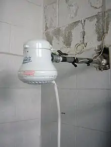Inventée au Brésil dans les années 1930 et utilisée fréquemment depuis les années 1940, la douche électrique est un appareil ménager souvent vu dans les pays d'Amérique du Sud en raison des coûts plus élevés de la distribution du gaz. Les modèles antérieurs étaient en cuivre chromé ou en laiton, ce qui était cher, mais depuis 1970, les unités en plastique injecté sont populaires en raison de prix bas similaires à ceux d'un sèche-cheveux. Les douches électriques ont un système électrique simple, fonctionnant comme une cafetière, mais avec un plus grand débit d'eau. Un interrupteur de débit allume l'appareil lorsque l'eau le traverse. Une fois l'eau arrêtée, l'appareil s'éteint automatiquement. Une douche électrique ordinaire a souvent trois réglages de puissance : haute (5,5 kW), faible (2,5 kW) ou froide (0 W) à utiliser quand un système de chauffage central est disponible ou pendant les saisons chaudes.