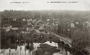 Au milieu du XIXe siècle, le village de Chaumussay est décrit de manière peu flatteuse : son église n'a rien de remarquable ; les maisons du bourg sont mal bâties ; sa principale rue est très irrégulière[39]. À la suite de la construction d'un pont en pierre sur la Claise (1869) remplaçant un pont en bois, le bourg a été réaménagé et la rue principale alignée dans l'axe du pont (1875). La modernité débarque dans les années 1880 avec l'arrivée du train, permettant de rejoindre Tours dans un délai et un confort jusqu'alors inégalés[40]. La commune est ensuite victime de l'exode rural, la population a ainsi diminué de moitié en un siècle.