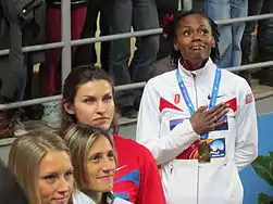 - Initialement 6e, elle est reclassée 3e à la suite des disqualifications pour dopage d'Anna Chicherova, de Yelena Slesarenko et de Vita Palamar, respectivement médaillée de bronze, 4e et 5e.