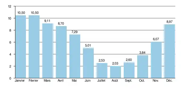 À l'étiage le VCN3 peut chuter jusque 0,48 m3, en cas de période quinquennale sèche, soit 480 litres par seconde.