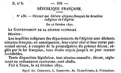 À la proclamation du décret Crémieux, sous le gouvernement Gambetta le 24 mars 1871, le désaccord est présent entre les kabyles et l'autorité française, cependant elle n'explique pas la révolte de 1871 selon Richard Ayoun (1988) En effet, lorsque les villes et communes furent divisées de façon que les tribus soient sous autorité des maires.