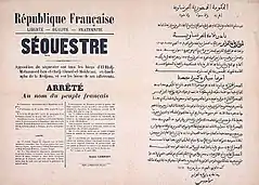 En Algérie, ces événements provoquent une insurrection larvée des Européens d'Algérie contre les autorités militaires[15] : le 28 octobre, le gouverneur général intérimaire désigné, le général Walsin-Esterhazy, est contraint de démissionner sous la pression de la rue et est immédiatement conduit au port d'Alger et transporté sur un navire de guerre[16]. Son remplaçant est un civil, Charles du Bouzet, commissaire extraordinaire.
