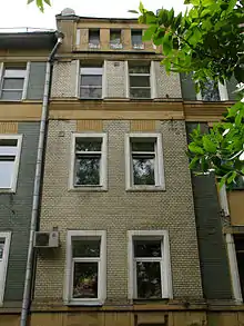 - N°23, hôtel particulier, patrimoine protégé, construit en 1880 par Constantin Busse[4]. En 2012, l'édifice est loué par la compagnie «Старый квартал» (Stary kvartal) pour un rouble le mètre carré par an, à charge de restaurer l'hôtel particulier. Le locataire ôte en 2013 les murs de l'étage supérieur et la toiture pour les remplacer par une couverture de béton.