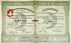 En 1912, la Deutsche Bank acquiert une part de 23,75 % dans la Turkish Petroleum Company, société à capitaux britanniques et néerlandais destinée à exploiter les richesses pétrolières de l'Empire ottoman, ce qui, à terme, devait rentabiliser la construction du chemin de fer.