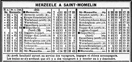 La ligne est mise en service en traction vapeur le entre la gare d'Herzeele et la gare d'Esquelbecq (nouvelle section)[1]. Le , la ligne est prolongée par une nouvelle section entre la gare d'Esquelbecq à la gare de Saint-Momelin[2].