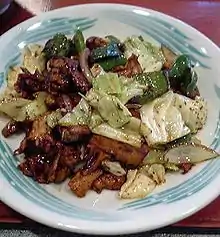 - Huiguo rou (回锅肉, viande grillée à la marmite, accompagnée de choux).